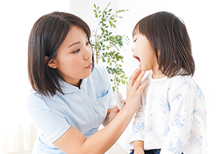 矯正治療は、大人でも子供でも受けられる治療ですが、子供のときに行うことで大きなメリットがあります。そのため当院では、歯並びが乱れそうなお子さんに対して小児矯正をご案内しています。小児矯正では、歯がきちんと並ぶスペースを確保するための顎を広げる治療(床矯正)をはじめ、乳歯と永久歯が入り混じっている成長期に、顎や骨格が自然に成長する力を利用しながら治療を進めていきます。